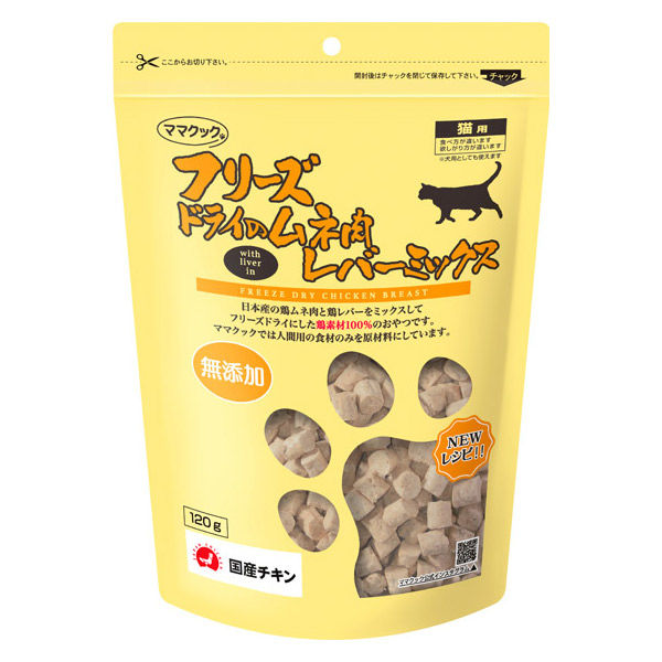 ママクック フリーズドライのムネ肉 レバーミックス 無添加 国産 120g 1袋 キャットフード 猫用 おやつ