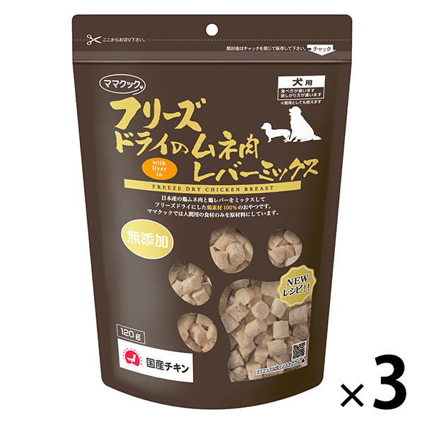 ママクック フリーズドライのムネ肉 レバーミックス 無添加 国産 120g 3袋 ドッグフード 犬用 おやつ
