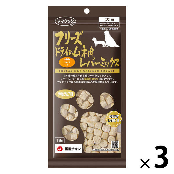 ママクック フリーズドライのムネ肉 レバーミックス 無添加 国産 18g 3袋 ドッグフード 犬用 おやつ
