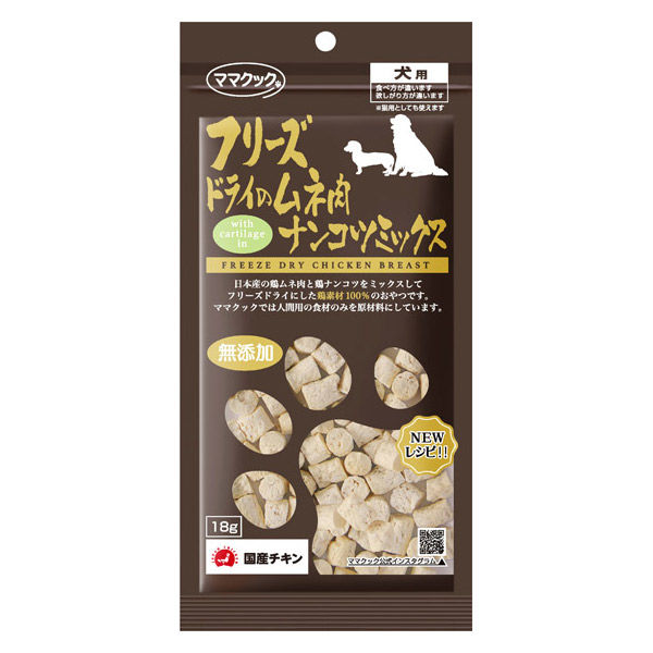 ママクック フリーズドライのムネ肉 ナンコツミックス 無添加 国産 18g 1袋 ドッグフード 犬用 おやつ
