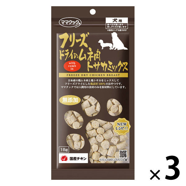 ママクック フリーズドライのムネ肉 トサカミックス 無添加 国産 18g 3袋 ドッグフード 犬用 おやつ