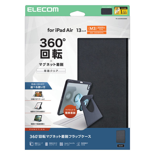 エレコム 13インチiPad Air(M3/M2) フラップケース 360度回転 TB-A25XMG360BK 1個