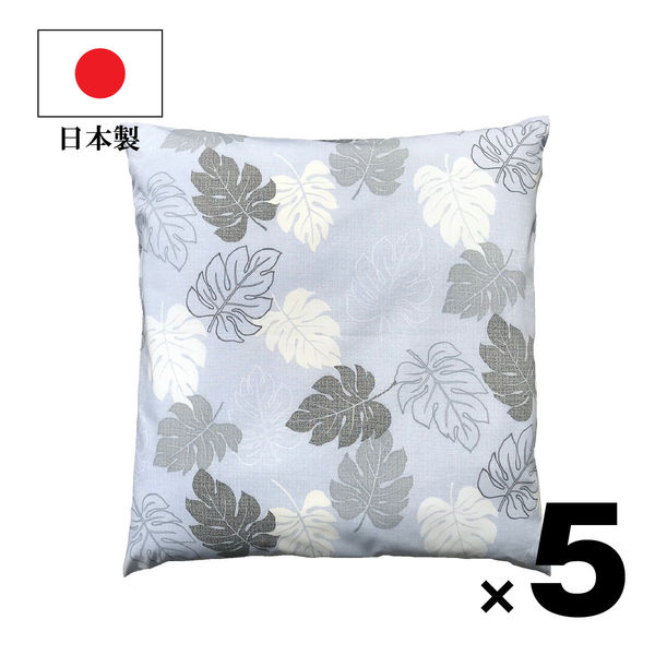 createalpha 5枚 座布団カバー モンステラ柄 グレー 55×59cm 4947726700967-GY-5 1セット(5枚入)(直送品)