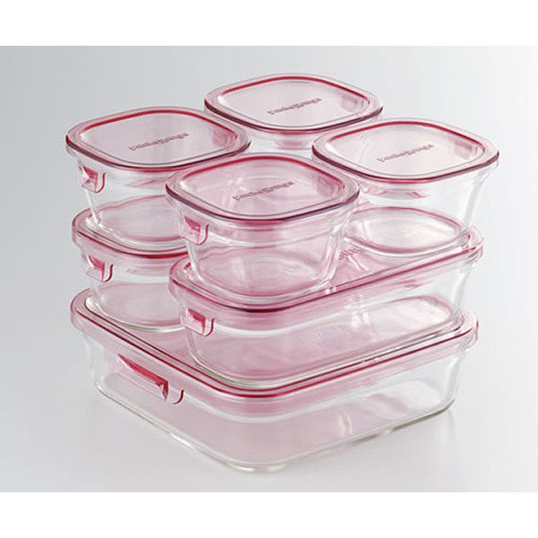 耐熱ガラス 保存容器 ピンク システムセット 7点 パック&レンジ PSC-PRN-P7 iwaki(イワキ)