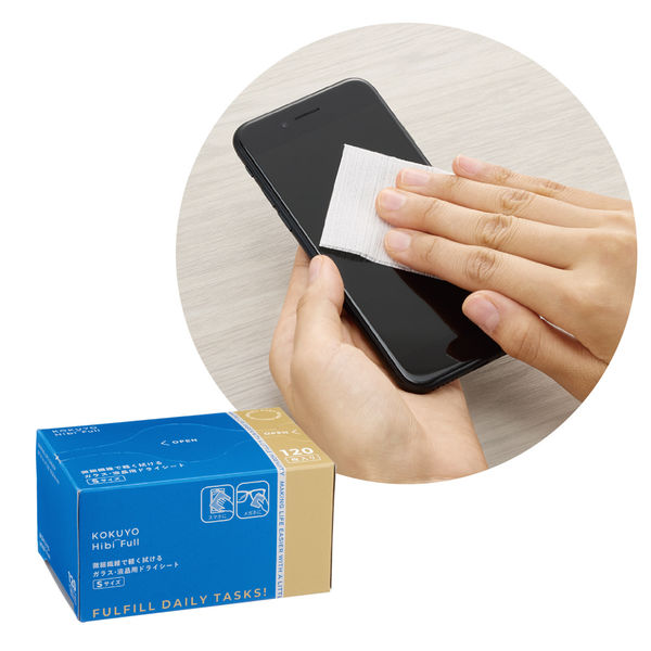 コクヨ 微細繊維で軽く拭けるガラス・液晶用ドライシート Sサイズ 120枚入 ヒビフル KHF-CG111 1箱(120枚)