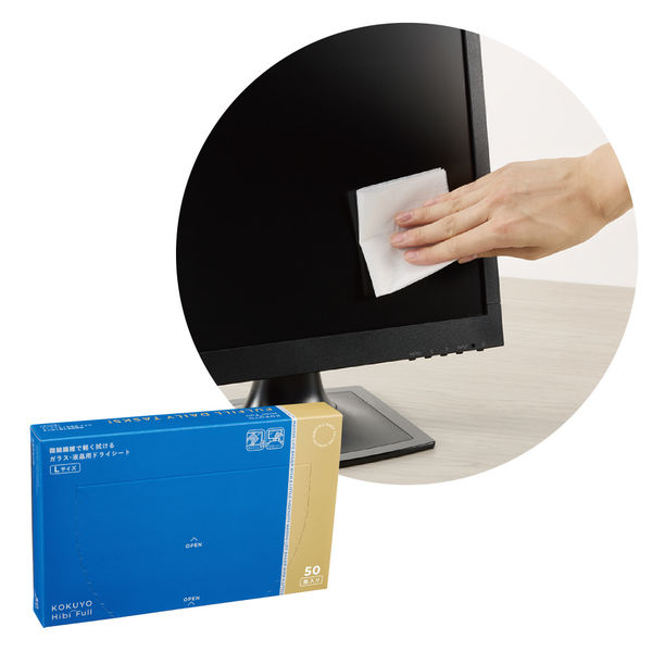 コクヨ 微細繊維で軽く拭けるガラス・液晶用ドライシート Lサイズ 50枚入 ヒビフル KHF-CG133 1箱(50枚)