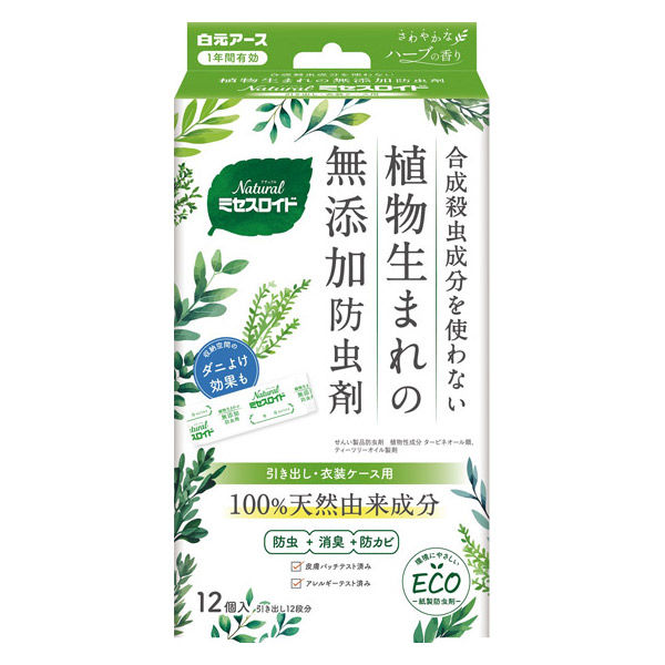Natural ミセスロイド 引き出し・衣装ケース用 1年防虫 1箱(12個入) 白元アース