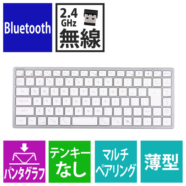 エレコム キーボード マルチペアリング 充電式 ミニサイズ パンタグラフ式 ホワイト TK-PN1075MPAWH 1個