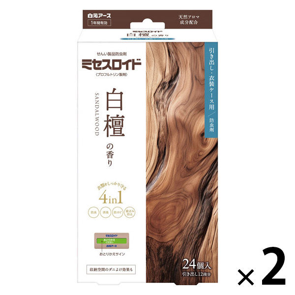 ミセスロイド 引き出し・衣装ケース用 1年防虫 白檀の香り 1セット(1箱(24個入)×2) 白元アース