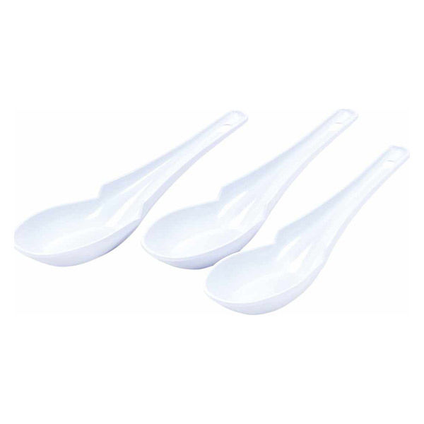 | 商品の特徴 | フック付きのレンゲスプーン3本入りです。 無駄のないシンプルなデザインです。 お子様にも持ち易く耐熱性に優れ軽いメラミン樹脂です。 フック付きでラーメン鉢のフチに引っかかるのでレンゲがスープに落ちない。 | ||