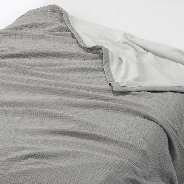 無印良品 綿ガーゼ 綿混ベロア リバーシブルブランケット D 180×200cm グレー 良品計画