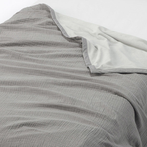 無印良品 綿ガーゼ 綿混ベロア リバーシブルブランケット S 140×200cm グレー 良品計画