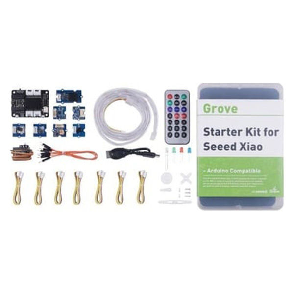 | 商品の特徴 | Seeed Studio XIAO 拡張ボードと各種Groveセンサ、アクチュエータなどをまとめたスターターキットです。 開発ボード初心者がすぐに始められ、各自が楽しいプロジェクトを実際に進められるように、SeeedStudioが提供するSeeed Studio XIAO シリーズのコースが付属しています(現時点では英語のみ) | ||