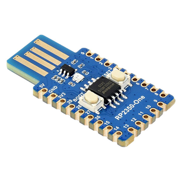 | 商品の特徴 | RP2350Aを搭載したMCUボードです。小型でUSBタイプAポートに差し込み可能なため、すぐに使用可能で、29個のGPIOピンを備えています | ||