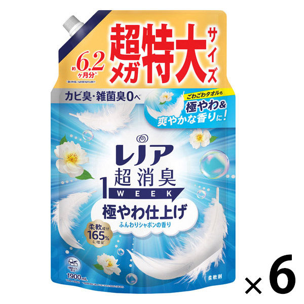 レノア 超消臭1WEEK 極やわ仕上げふんわりシャボン 詰め替え 超メガ特大 1900mL 1セット(1個×6) 柔軟剤 P&G