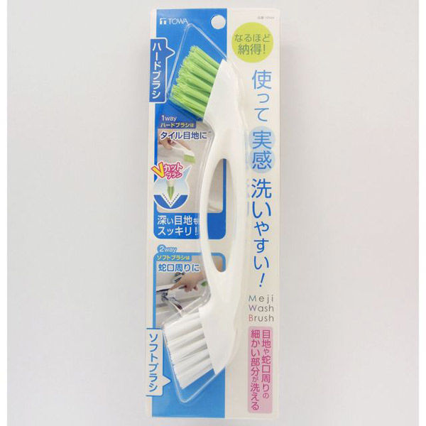 | 商品の特徴 | 使って実感洗いやすい!目地や蛇口周りの細かい部分が洗える●指置きポイントがあり持ちやすい形状。●ソフトとハード2種類のブラシで汚れや清掃個所に応じて使い分けができます。●ソフトブラシは蛇口周りの細かなところを洗うのに適しています。●ハードブラシは浴室のタイル等の目地洗いに適しています。●風呂フタの溝洗いに便利です。 | ||