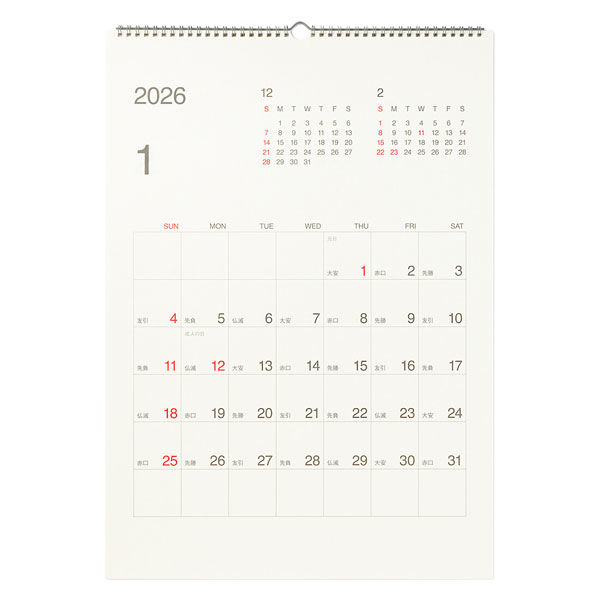 | 商品の特徴 | 大きくて見やすいA2縦型タイプの日曜始まり壁掛けカレンダーです。砂糖の製造過程でサトウキビを絞った後に出る繊維を活用したバガスペーパーを使用しています。【無印良品 MUJI】【2026年カレンダー・スケジュール帳】 | ||