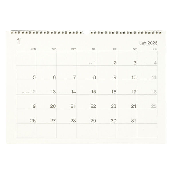 無印良品 バガス入りペーパー月曜始まり壁掛けカレンダー 2026年1月~12月 A3横型 良品計画