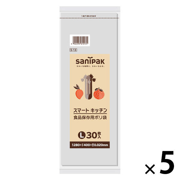 スマートキッチン 食品保存用 ポリ袋 L 透明 280×400mm 1セット(1パック(30枚入)×5)日本サニパック