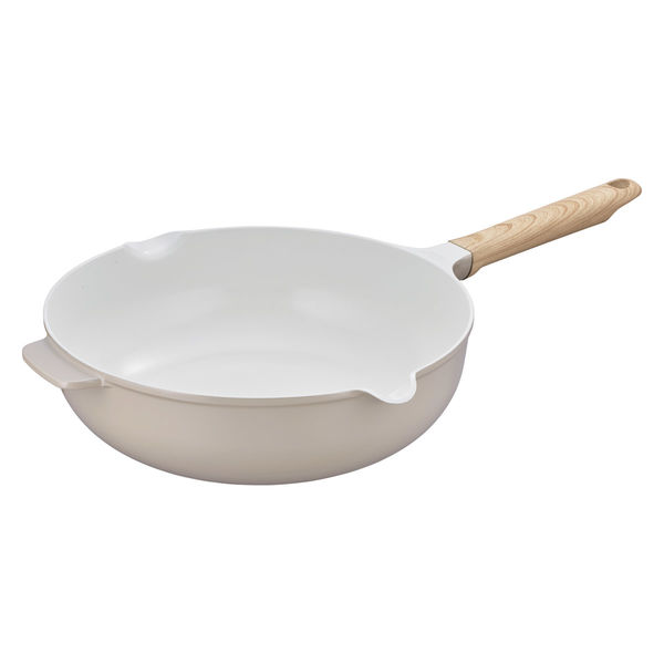 | 商品の特徴 | ●高耐久性セラプロテクトコート採用●留め具がないから洗いやすい●ダイキャスト製法でIH対応でも軽量●優しい色味の木目調ハンドル●内面が白くて、食材の色等を確認しやすい●深型設計●IH/ガス火対応 | ||