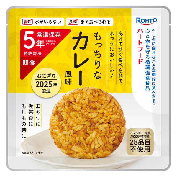 | 商品の特徴 | もしもに備えながら定期的に食べきる。心と命を守る循環備蓄食品「ハートフード5年常温保存おにぎり カレー風味」は、調理不要(水がいらない)、食器不要(手で食べられる)、5年常温保存、特許製法でつくられた”おにぎり”です。もしもといつもに備える循環備蓄食として、ユーザビリティ(災害時のQOL向上)、ローリングストックしやすさを考えてつくりました。アレルギー物質(特定原材料等)28品目不使用です。 | ||