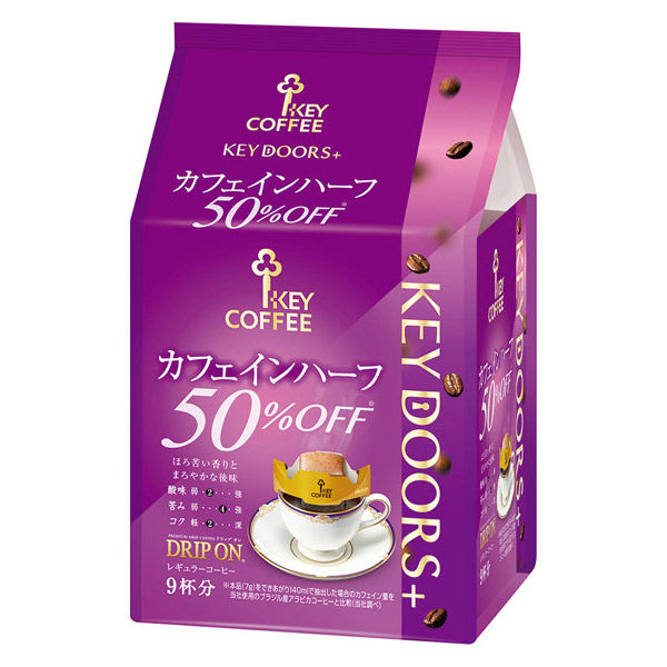 【ドリップコーヒー】キーコーヒー KEY DOORS+ ドリップ オン カフェインハーフ 1袋(9杯分)