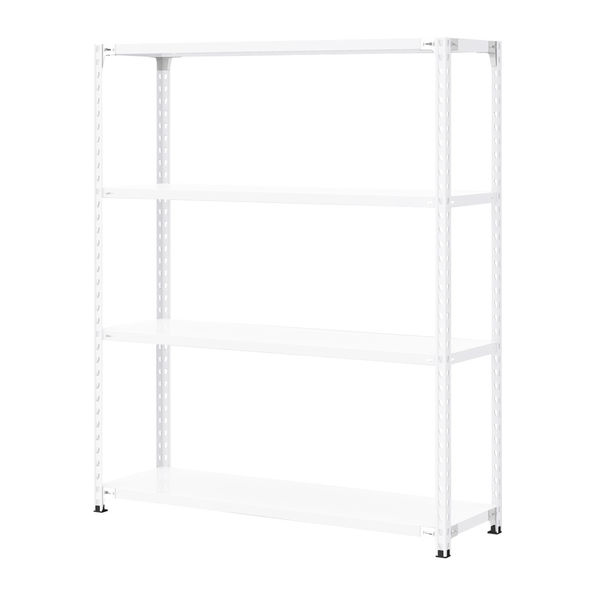 棚板1枚当たり耐荷重150kgの丈夫な天地4段ラック。ボルトレスタイプなので棚板の移動も簡単。