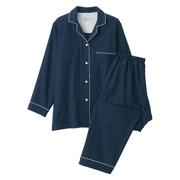 本商品:無印良品 レディース 婦人 脇に縫い目のない 二重ガーゼ長袖パジャマ 婦人M ダークネイビー 良品計画 |