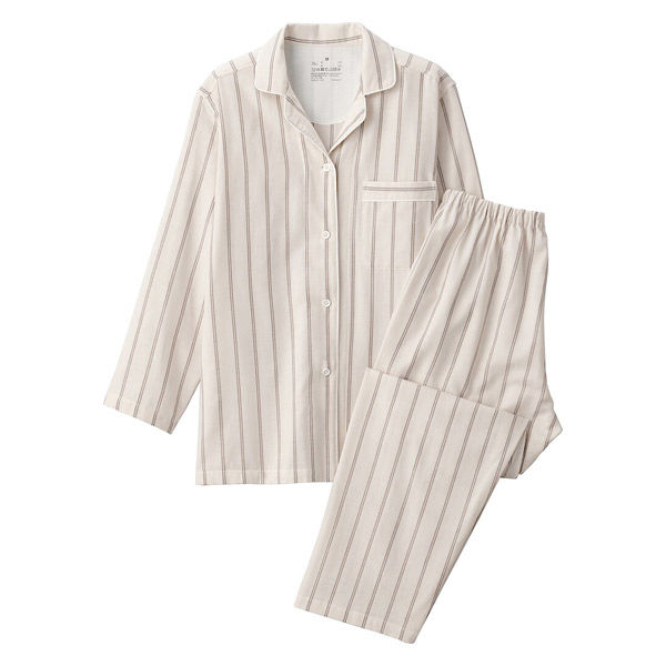 無印良品 レディース 婦人 脇に縫い目のない 二重ガーゼ長袖パジャマ 婦人M サンドベージュストライプ 良品計画