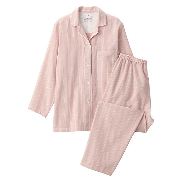無印良品 レディース 婦人 脇に縫い目のない 二重ガーゼ長袖パジャマ 婦人S ピンクストライプ 良品計画