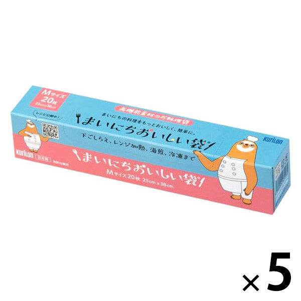 まいにちおいしい袋 Mサイズ 下ごしらえ・レンジ加熱・湯煎・冷凍 半透明 1セット(1箱(20枚)×5)クリロン化成