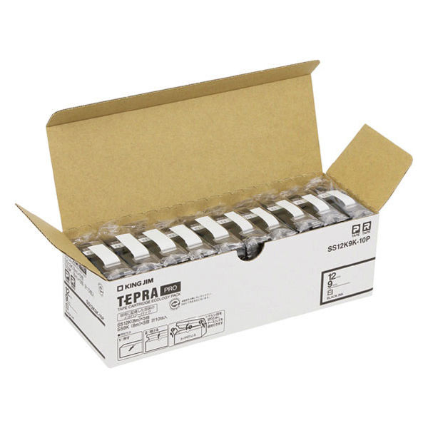 【アウトレット】【Goエシカル】訳あり テプラ 【純正】テープカートリッジ 幅9mm・12mm 白ラベル(黒文字) 1箱(10個入)