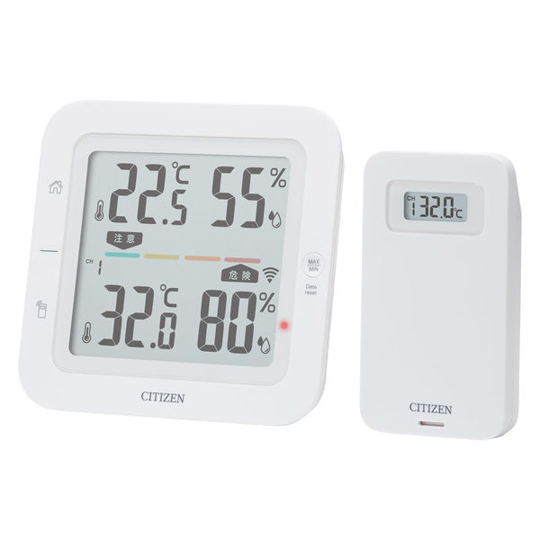 | 商品の特徴 | 離れた場所(約50m)の温度・湿度を管理することができます。簡易熱中症指標表示付きで、温湿度の状態を4段階に可視化することができます。本製品は親機・子機のセットになり、追加で子機1台を購入することで最大3箇所の温湿度をモニタリングすることができます。 | ||