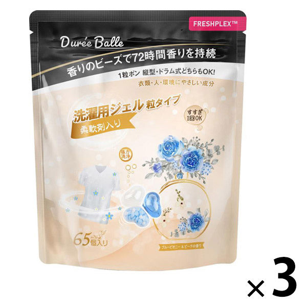 Dure’e Balle デュリボール 洗濯用ジェル粒 ブルーピオニー&ピーチ 柔軟剤入り 1セット(65粒入×3個) 洗濯洗剤 優ラボ