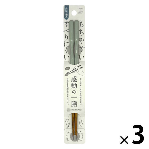 感動の一膳 細(持ち手細目めサイズ) アッシュグリーン 1セット(1膳×3)すべりにくい 国産 食洗機対応 カワイ