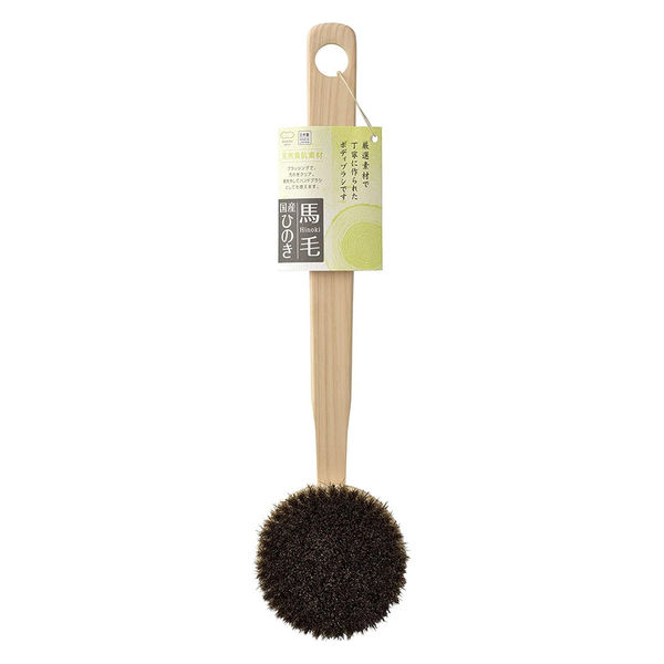 | 商品の特徴 | 天然素材のボディブラシです。ブラシ部分には柔らかい洗い心地の馬毛を使用しています。柄には国産ひのきを採用。取り外すとハンドブラシとしても使用できます。 | ||