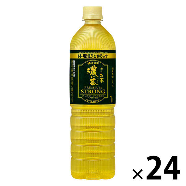 | 商品の特徴 | コク深い渋みを引き立てる、プレミアムストロング専用の一番茶ブレンド茶葉を贅沢に使用しています。ガレート型カテキンは濃い茶比1.27倍含有。(濃い茶:28.3mg/100ml、プレミアムストロング:36.1mg/100ml) ガレート型カテキンが「BMIが高めの方の体脂肪を減らす」。機能性表示食品の緑茶飲料です。金色透明の液色と、コク深い渋みを一層引き立てるように抽出しました。ペットボトルの1L(1000ml)のお茶をお探しの方におすすめです。 | ||