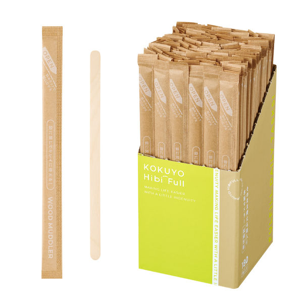 木製マドラー そのまま使える箱入り 紙個包装 スリムタイプ 140mm ヒビフル コクヨ 1箱(180本入)(直送品)