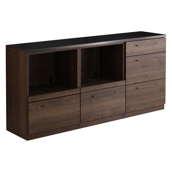 オープン収納×2+引き出し収納 幅1800×奥行440×高さ850mm ウォルナット SH-22-CKS180-AAC 1台(直送品)