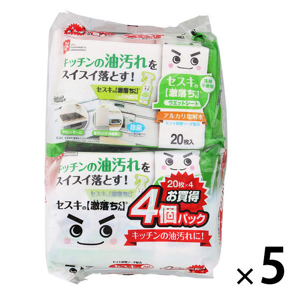 セスキの激落ちくんシート キッチン用 お掃除シート 油汚れ 洗剤不使用(1パック(20枚入×4個)×5)レック