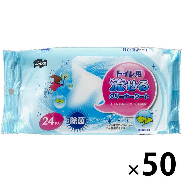 山崎産業 コンドル トイレ用流せるクリーナーシート 24枚入 1箱(1個×50)