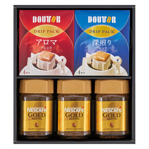 - ネスカフェゴールドブレンド65g×3、ドトールドリップパック(深煎りブレンド・アロマブレンド)各7g×各4P