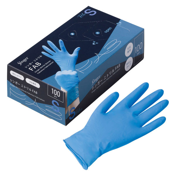 【使いきり手袋】 宇都宮製作 シンガー ニトリルFAB ブルー S NBR0453PFーBB 1セット(1箱(100枚)×5)