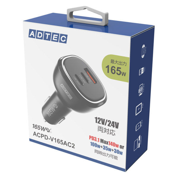 アドテック PDシガーソケットタイプ充電器/165W/Type-Ax1/Type-Cx2/ブラック ACPD-V165AC2 1個(直送品)