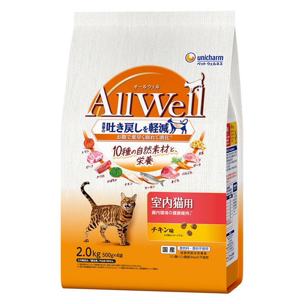 オールウェル 室内猫用 10種の自然素材 チキン味 国産 2.0kg(500g×4袋)1袋 ユニ・チャーム キャットフード