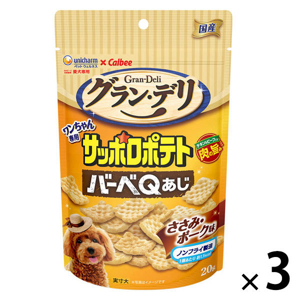 グラン・デリ ワンちゃん専用 サッポロポテト バーベQあじ ささみ・ポーク味 国産 20g 3個 ユニ・チャーム 犬用 おやつ