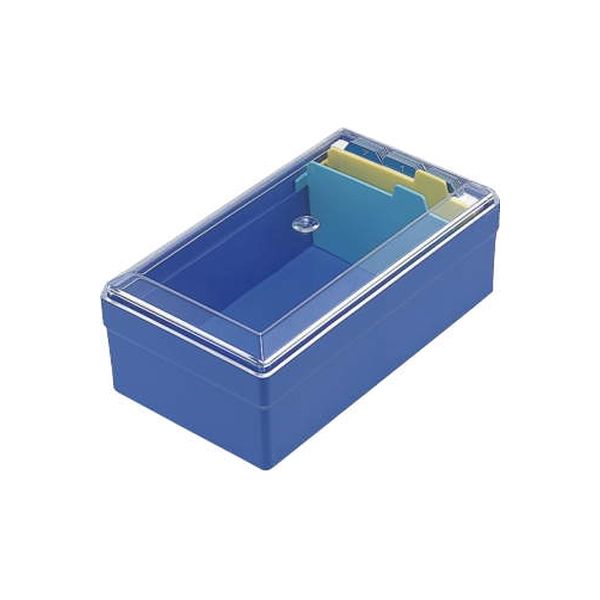 | 商品の特徴 | ●名刺整理箱 ●適正収容枚数:500枚 ●再生PS樹脂成型品 ●2枚のPE樹脂仕切板付 ●紙製50音順ガイド20枚付 | ||