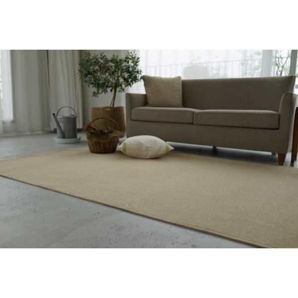 その他商品仕様 ●パイル長:7mm●裏面:ジュートバック●機能1:防炎加工(試験番号EO080176)●機能2:消臭(トリプルフレッシュ)加工●機能3:静電加工(2,800V以下 JIS L-1021-16 23℃ 25%RH 合成底)●機能3:防汚加工 カラー ライトベージュ