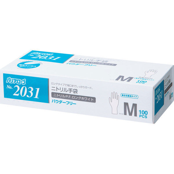 リーブル ニトリルP.F. ロングホワイト No.2031 パウダーフリー Mサイズ 1箱(100枚入)(使い捨てグローブ)(わけあり品)