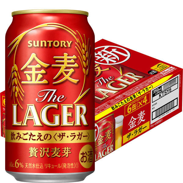 | 商品の特徴 | 力強い飲みごたえの本格的なビールに近い味わいのサントリー新ジャンル「金麦ザ・ラガー」が、“贅沢麦芽”でさらに美味しく、麦のうまみが進化しました。国産麦芽を一部ブレンドした“贅沢麦芽”、天然水仕込や厳選した“旨味麦芽”など、こだわりの素材を使用。麦の旨味やコクを引き出す「本格二段仕込」や、独自技術「 HHS製法※1」など、こだわりの製法を採用。※1 高温高圧蒸気を使用し、通常では引き出すことができない香味成分を引き出す製法。メーカーキャンペーンシールの添付はお約束しておりませんのでご了承ください。 | ||